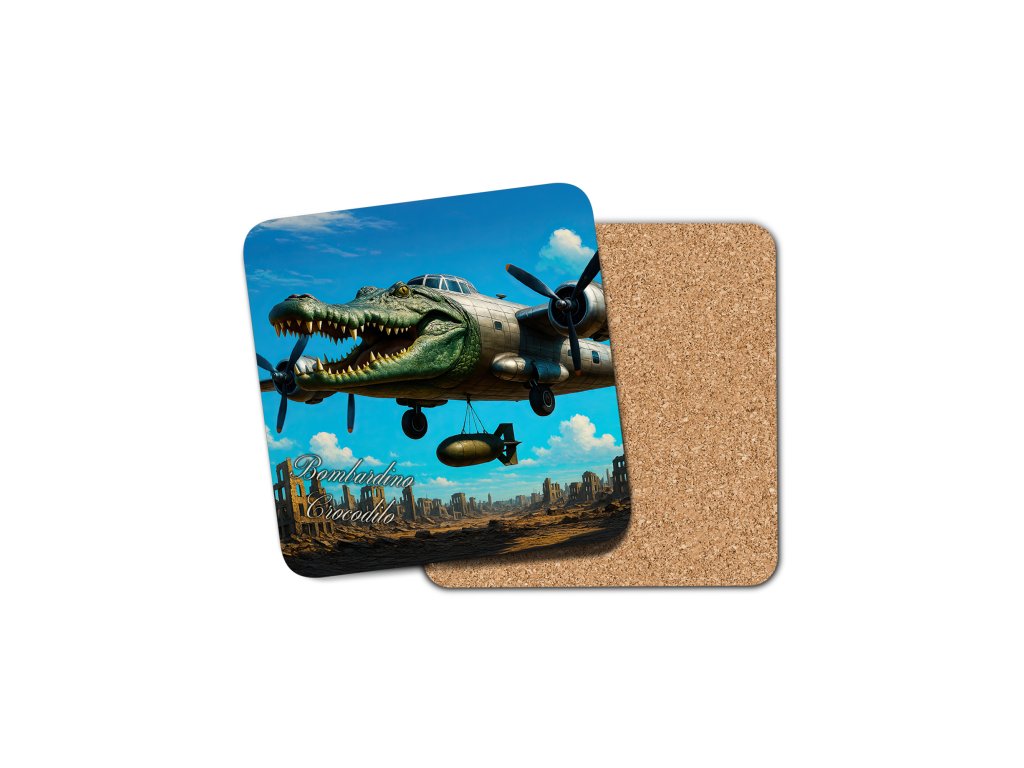 MDF korkový podtácek s kvalitním potiskem s potiskem Bombardino Crocodilo.