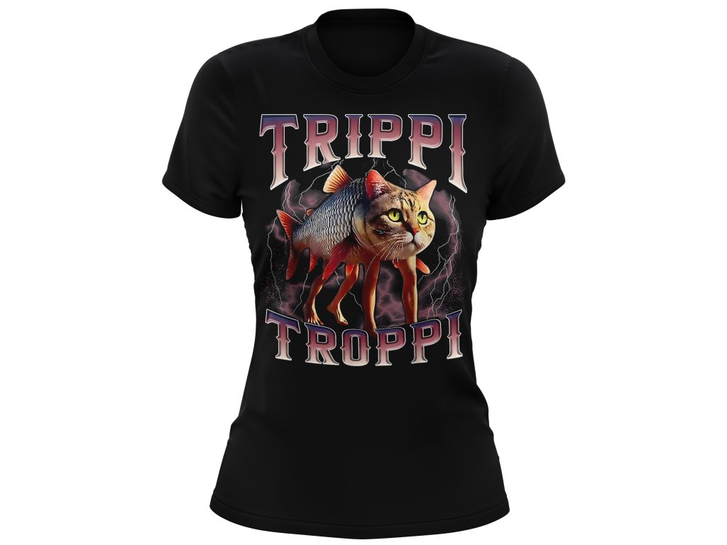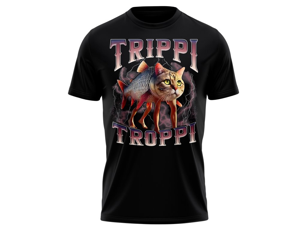 Když se ti zdá, že slyšíš mňoukat kapra… tak máš buď hlad, nebo na sobě tričko Trippi Troppi. Tahle bizarní evoluce ryby a kočky je čistý brainrot z hlubin internetu. Pro všechny, co si neumí vybrat mezi mazlíčkem a večeří.