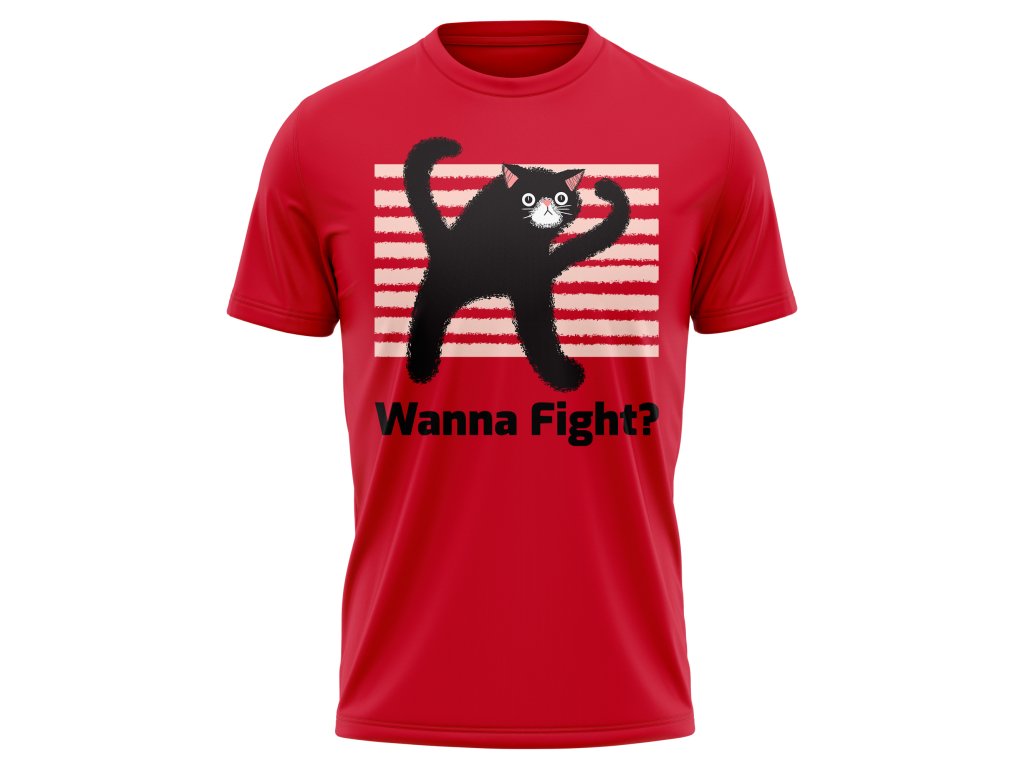 Tohle červené drama s černou kočkou a otázkou „Wanna fight?“ křičí do světa: „Jsem roztomilý, ale nezkoušej to.“