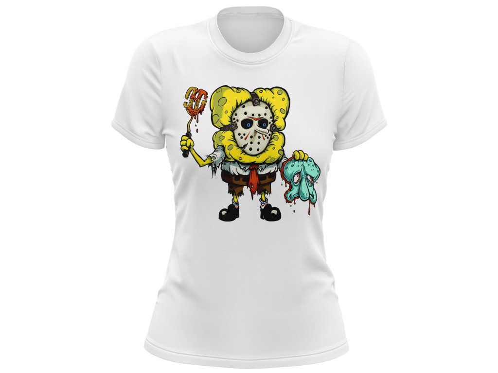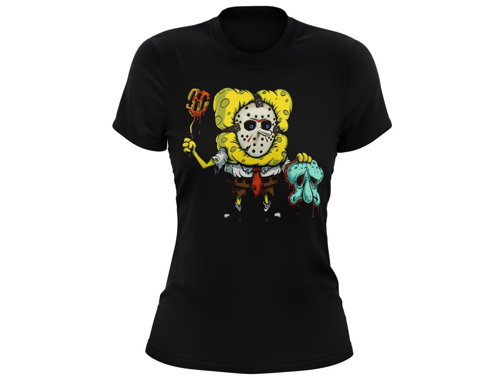 Krvavé detaily, děsivá maska a temná atmosféra – tohle tričko je pro každého, kdo si myslí, že by Bikini Bottom mohl být další zastávkou hororového slasheru.
